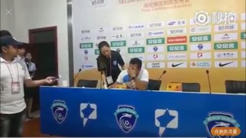 赛后新闻发布会上,孟永立痛哭宣布退出。图片来源:微博视频截图