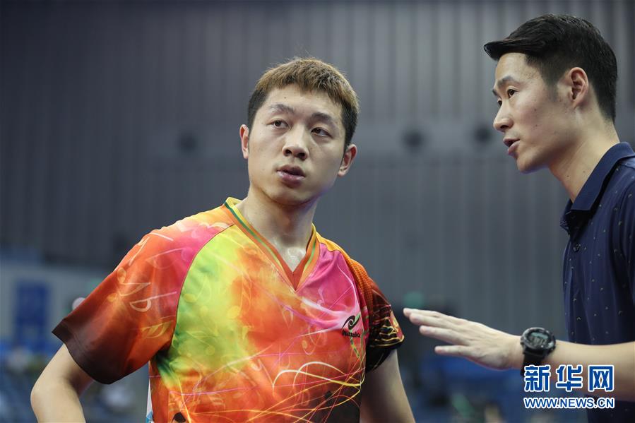 ↑9月2日,许昕接受教练王励勤的指导。 新华社记者刘续摄