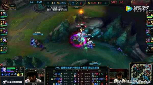 在MSI季中赛上,SKT战队被FW两度击败,FW战队小组赛成功双杀SKT。并且将大魔王打到生不如死的状态。
