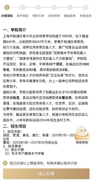 第一步:办理须知。详细了解招生简章后点击“我已阅读”,进行“线上办理”。