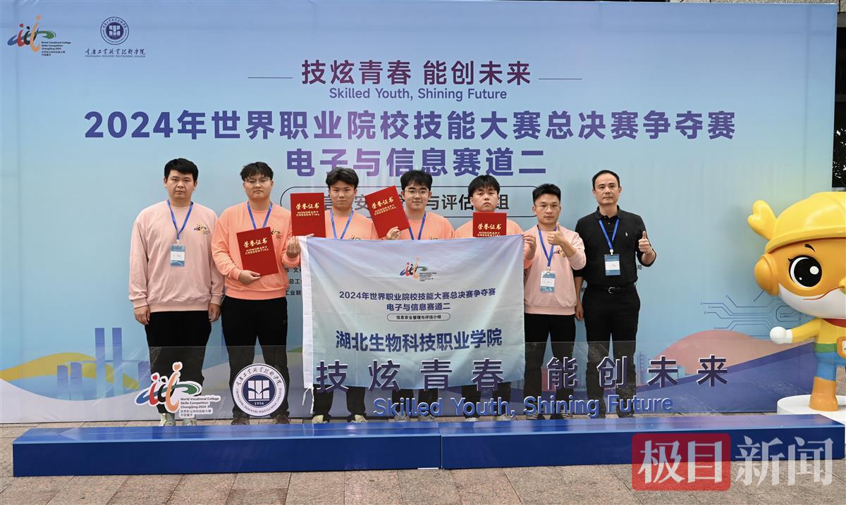10月29日,极目记者从湖北生物科技职业学院获悉,该校传媒学院信息安全技术应用专业群的四名学生李奥然、周斌、郭贺坤、蒋振豪,在指导教师陈启、石柳的率领下,于2024年世界职业院校技能大赛总决赛电子与信息赛道二(信息安全管理与评估小组)赛事中荣获金奖。面对备赛的艰难、规则的变动,他们凭借团结拼搏的精神,成功斩获了金奖,在比赛中实现“逆风翻盘”。