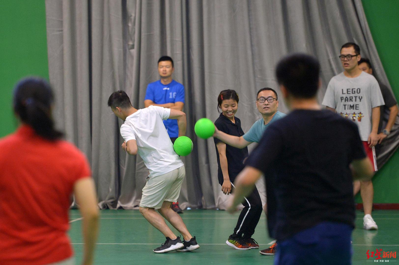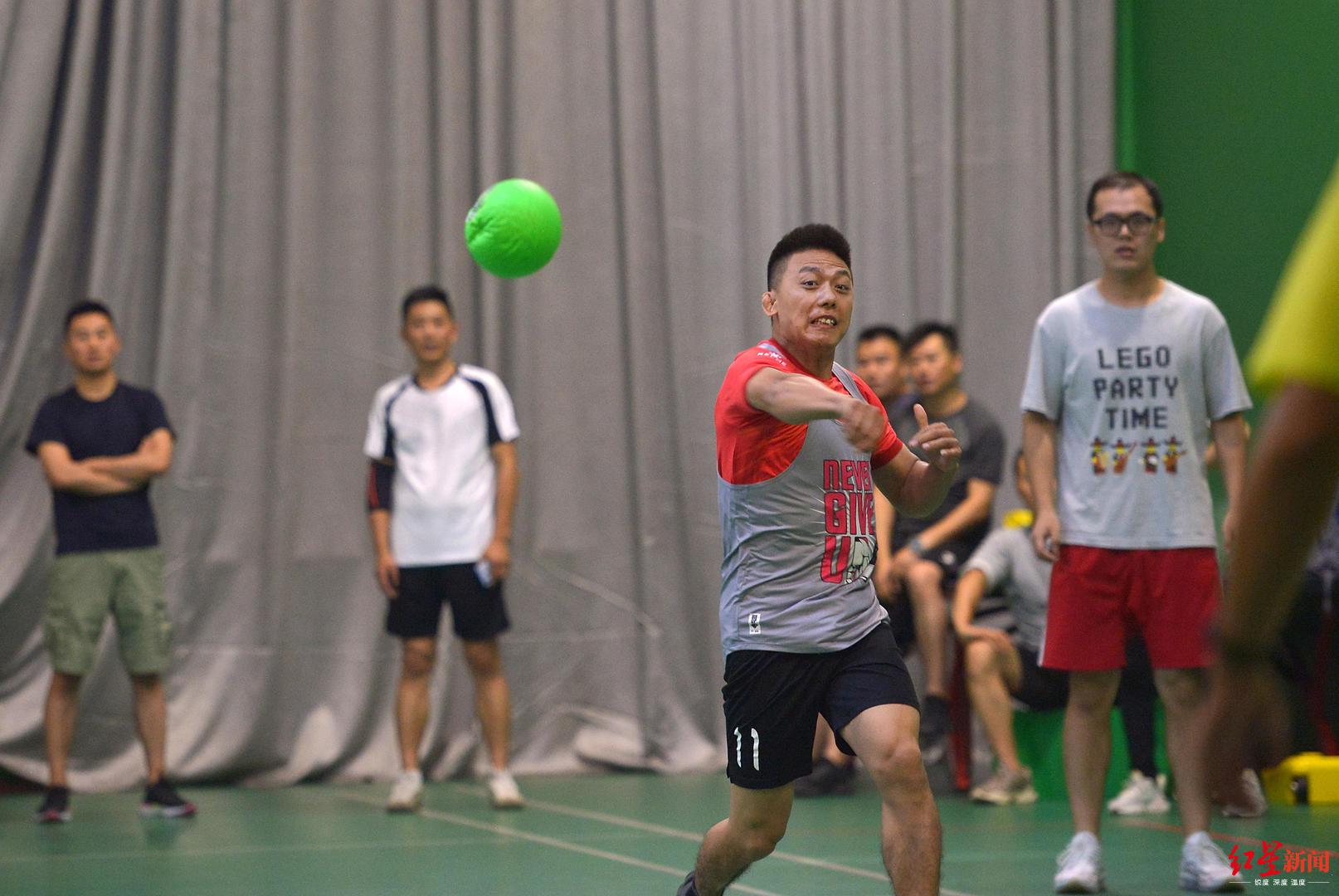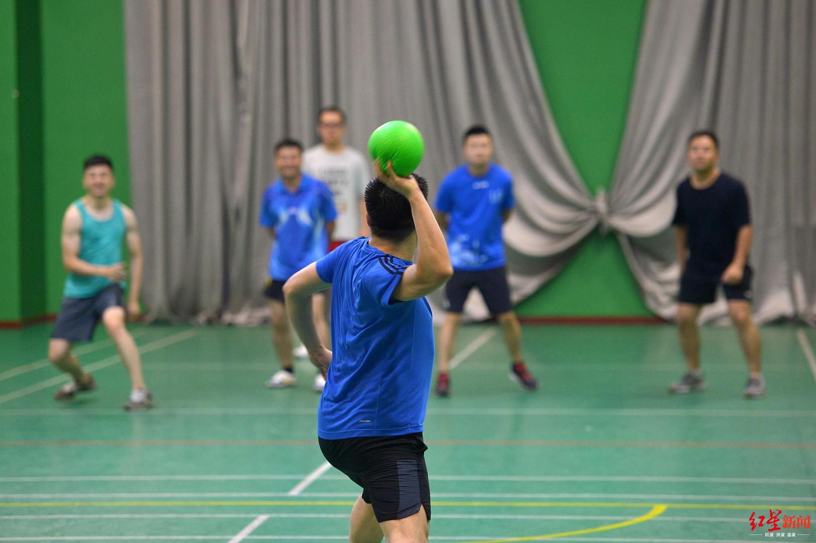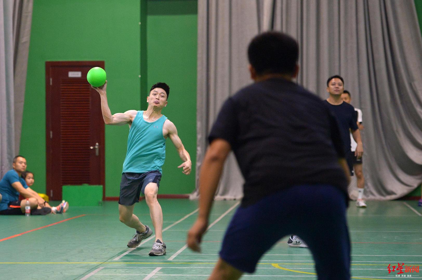 成都市公安局特警支队一大队的郑布罗格练得不亦乐乎,他身体健壮,“春节前后开始接触的吧。”躲避球项目,让他想起来更多的,还是小时候的“赶鸭子”,“像是找回童年,小时候经常赶鸭子。”每周两天的训练课后,郑布罗格还要做肌肉训练,“感觉扔球的时候,主要靠肩部力量,但是训练之后肩部容易拉伤。”