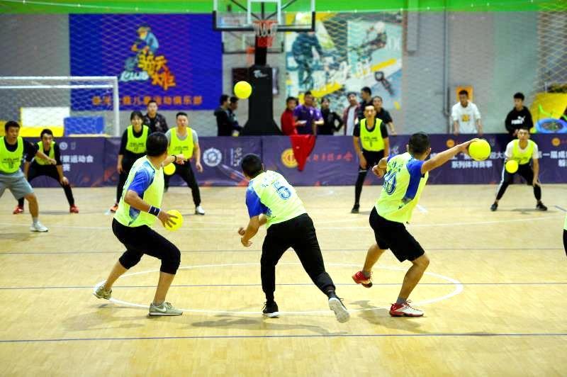 没多一会,场地上开始分组比赛。一声哨响,双方队员冲向场地中间拿球,接着寻找目标扔,“砰砰”声不绝于耳。一个队员捡球时背过了身,接着就被对方抓住机会击中,他连声懊恼:“哎呀,没注意到。”对面的“场上队长”也很着急,大喊同伴:“组织进攻,不要着急。”有一队运用起了声音的力量,“哦哦哦——”冲过去作势要扔球,像是球已经扔出,正摩擦着空气,像陨石般冲来;一组队打起战术,趁对方刚拿到球后撤时就发起进攻,击中一人,效果不错。
