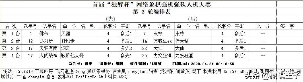 4月24日晚间,2020年新一届棋软象棋大赛八强火拼重磅登场。