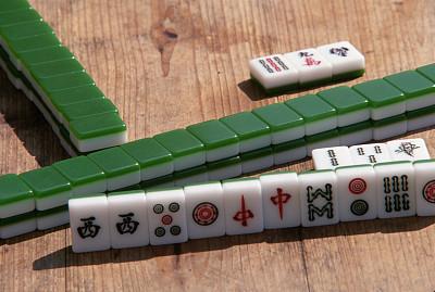我饶有兴趣地与美国人一起玩两把,但打了一会儿就发现不对劲。美国麻将和中国麻将有很大区别,虽然规则还是和牌和数番,但首先花色就不同,中国麻将的东南西北,被改成了纽约、墨西哥、旧金山、加拿大。红中、发财、白板则变成红蓝白的网状图案,筒子变成美国国旗上的星星,条子是红色条纹,万子是美金,花牌则变成饮料、汽车、飞机等图案。