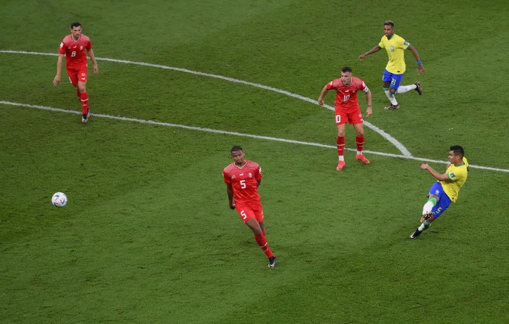 G组,世界排名第1的五星巴西,小组赛中,巴西2-0塞尔维亚,巴西1-0瑞士,巴西0-1喀麦隆,提前1轮出线的巴西,末轮遭遇绝杀,无缘全胜,本场结束后,本届世界杯已没有全胜的球队,0丢球的队伍。以2胜1负的战绩,积6分凭借净胜球的优势排在第一,也是连续16次世界杯小组第一晋级。