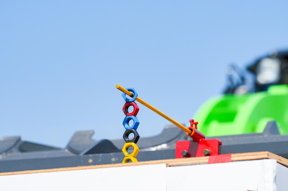 参赛选手正驾驶装载机取螺母,随后还要将取到的螺母叠放到指定位置。柳工供图