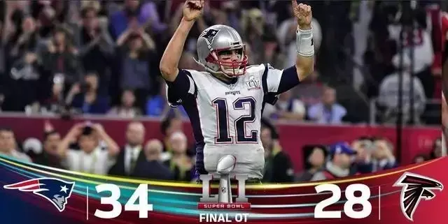 北京时间2月6日,第51届超级碗上演,新英格兰爱国者在落后亚特兰大猎鹰25分的情况下,奇迹般地在最后13分钟扳回25分,将比赛拖入加时(超级碗历史上的首个加时赛)。最终,爱国者一鼓作气,在加时赛中率先完成达阵,成功翻盘,夺得冠军。