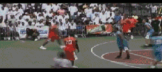 禁区内面对对手防守转身就是一记暴扣,小飞侠引爆全场。