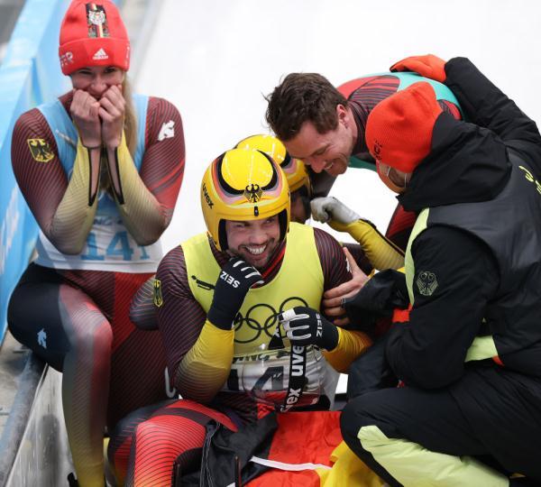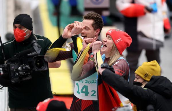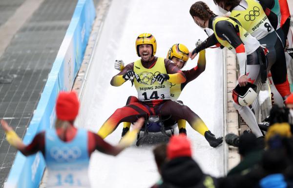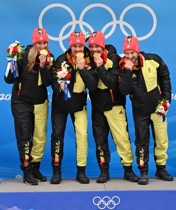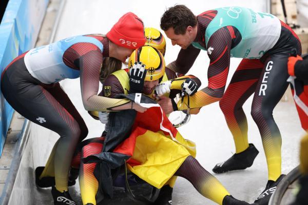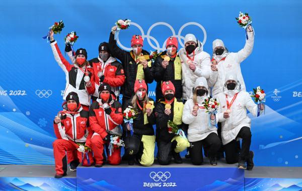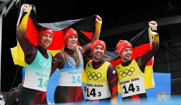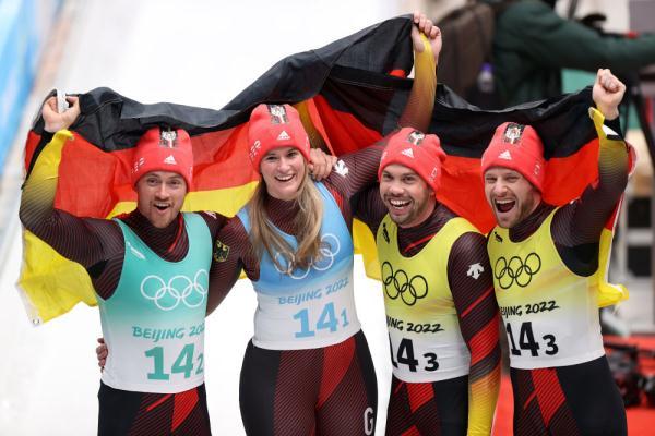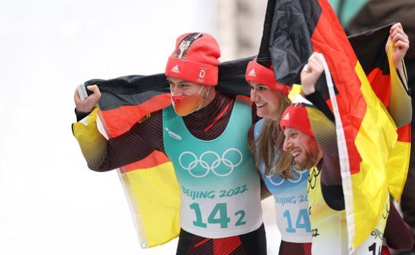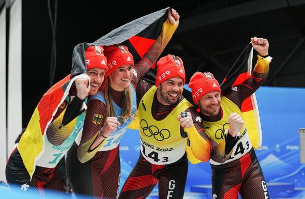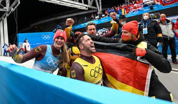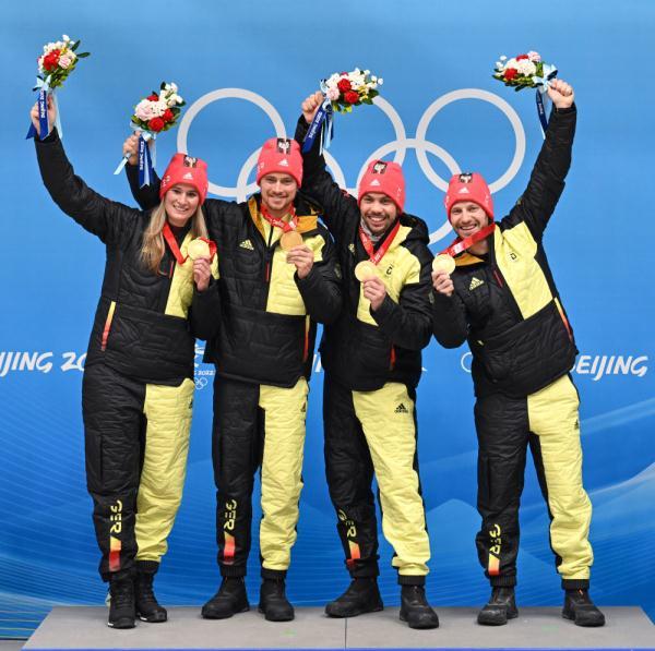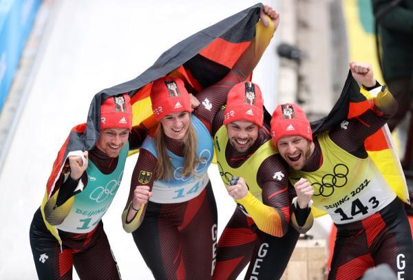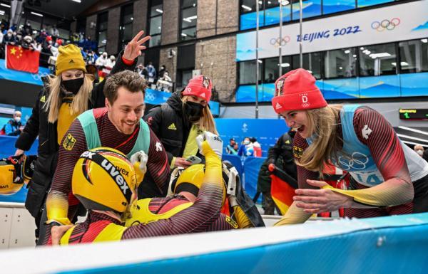 2月10日,在国家雪车雪橇中心举行的北京2022年冬奥会雪橇项目团体接力比赛中,德国队夺得冠军。