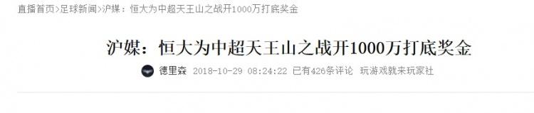 2018年广州队对阵海港,当时许家印甚至开出了单场1000万元的巨奖。