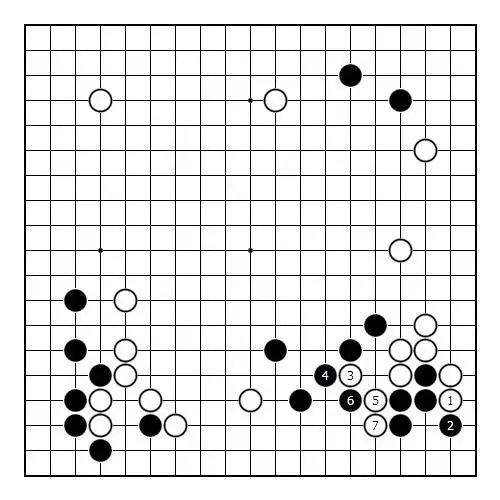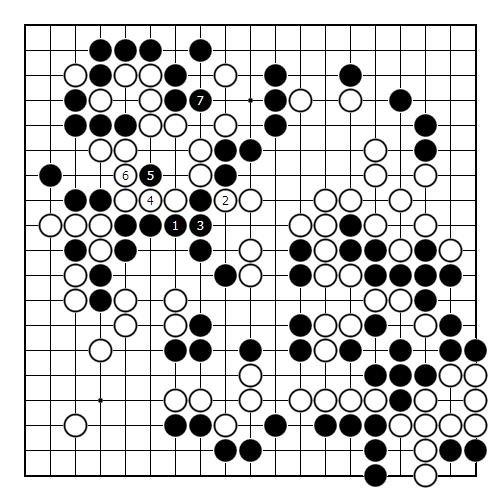 参考图六:这是劫后的场面,黑棋已经控制住了整块左下。
