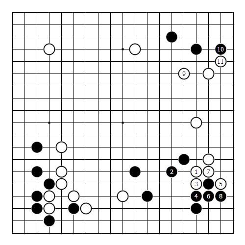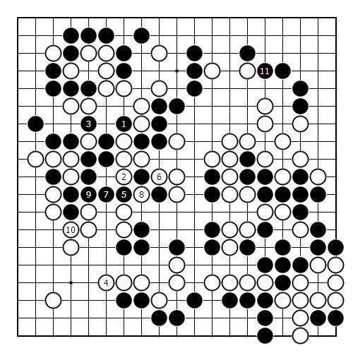 参考图十一:黑棋此时越走越被动,这是黑棋需要深刻反思的。