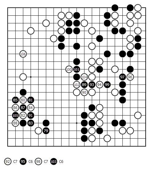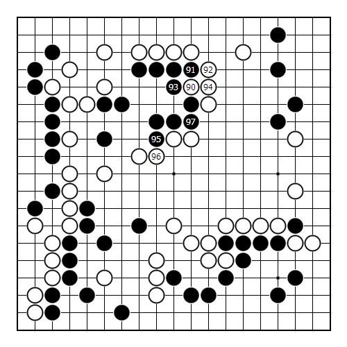难忘的瞬间(八):白棋90-96的定型值得推敲。