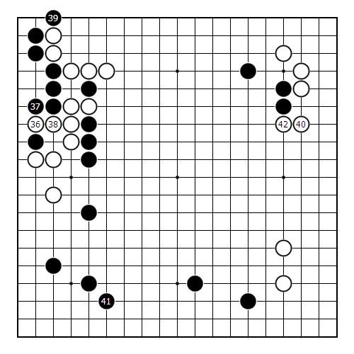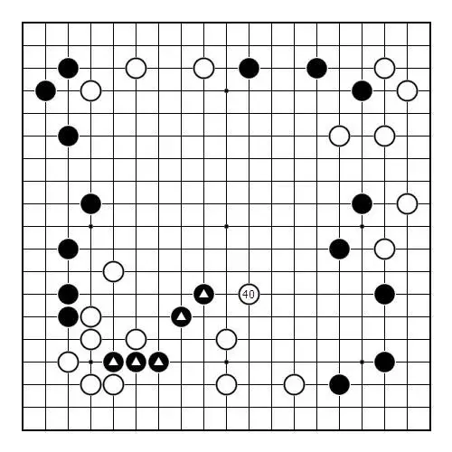 参考图十:白40飞攻黑棋△子,黑棋被动。