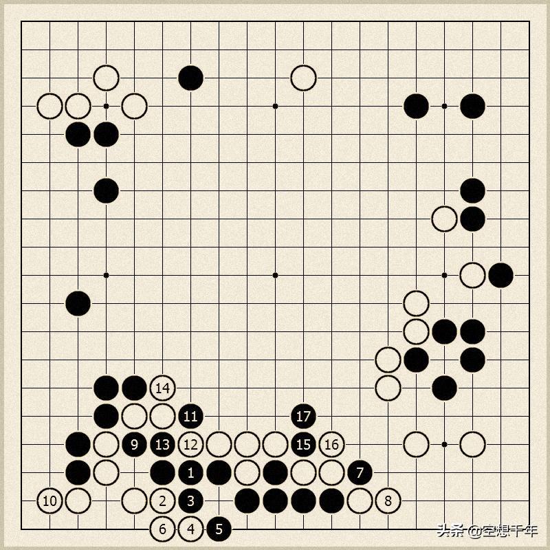 参考谱三:如果白棋尝试杀棋,到黑17手白棋已经崩溃。