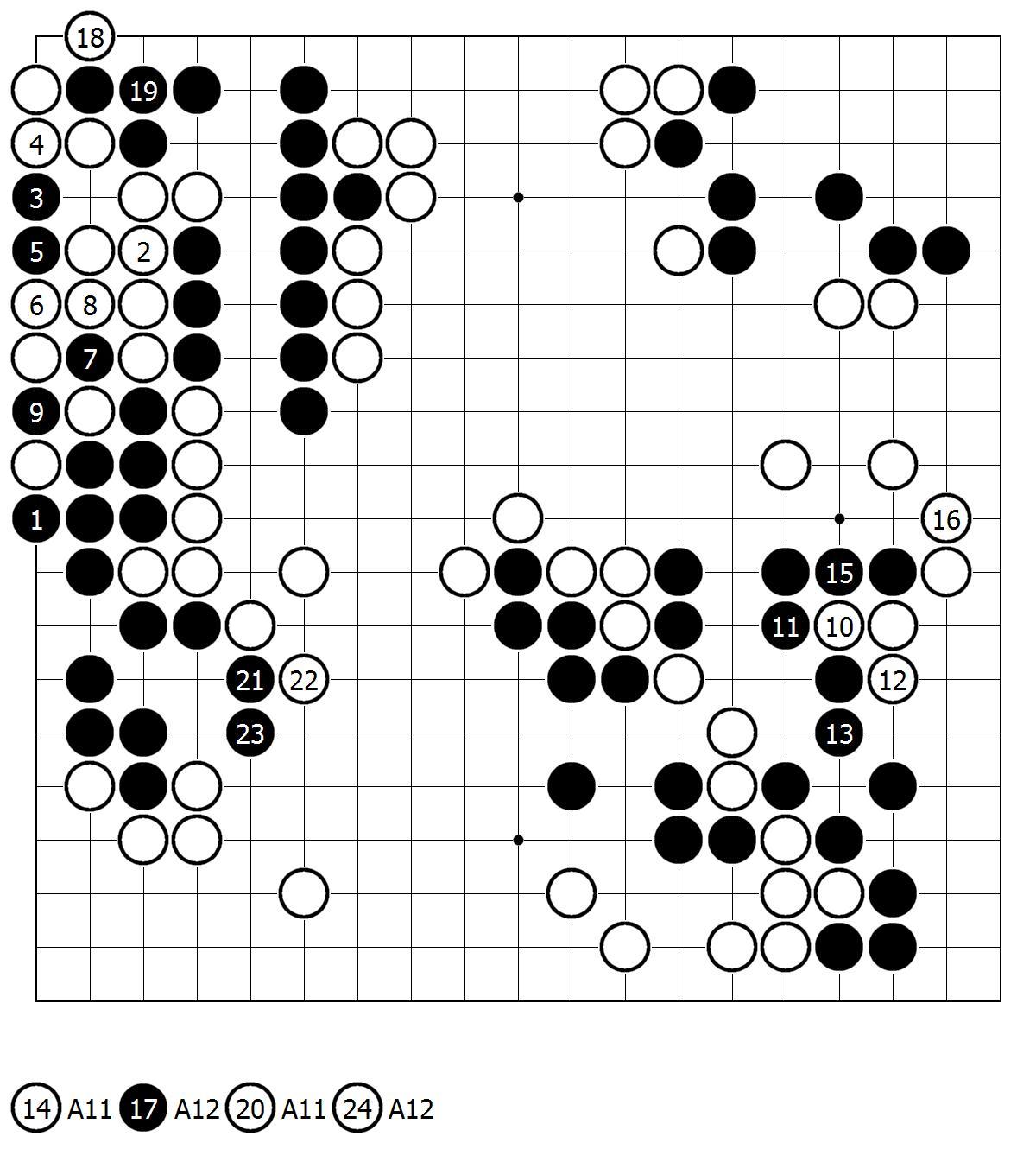 参考谱二:秀哉名人(白)和雁金七段(黑),弈于1926年9月。