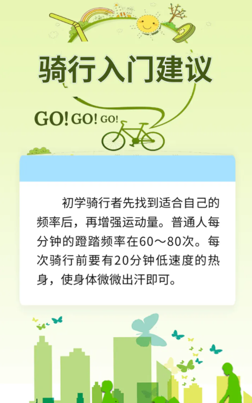 最后还要提醒大家,骑行可能有遭遇外伤和交通意外的风险,因此骑行前要规划好路线,不要选择坎坷不平的道路,遵守交通规则,戴好头盔以避免脑外伤和骨折。