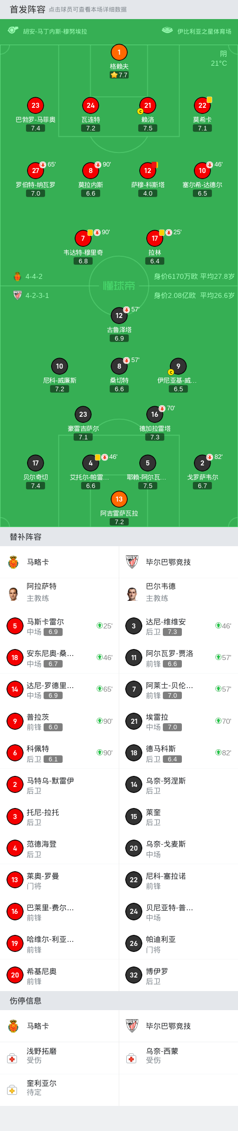 在西班牙足球甲级联赛第11轮的较量中,马略卡坐镇主场迎战毕尔巴鄂竞技。比赛中,马略卡的萨穆-科斯塔因累计两张黄牌被罚下场,给球队带来了不小的挑战。尽管如此,双方在场上都未能攻破对方的球门,比赛以0-0的比分结束。两队在激烈的对抗中各自收获一分。