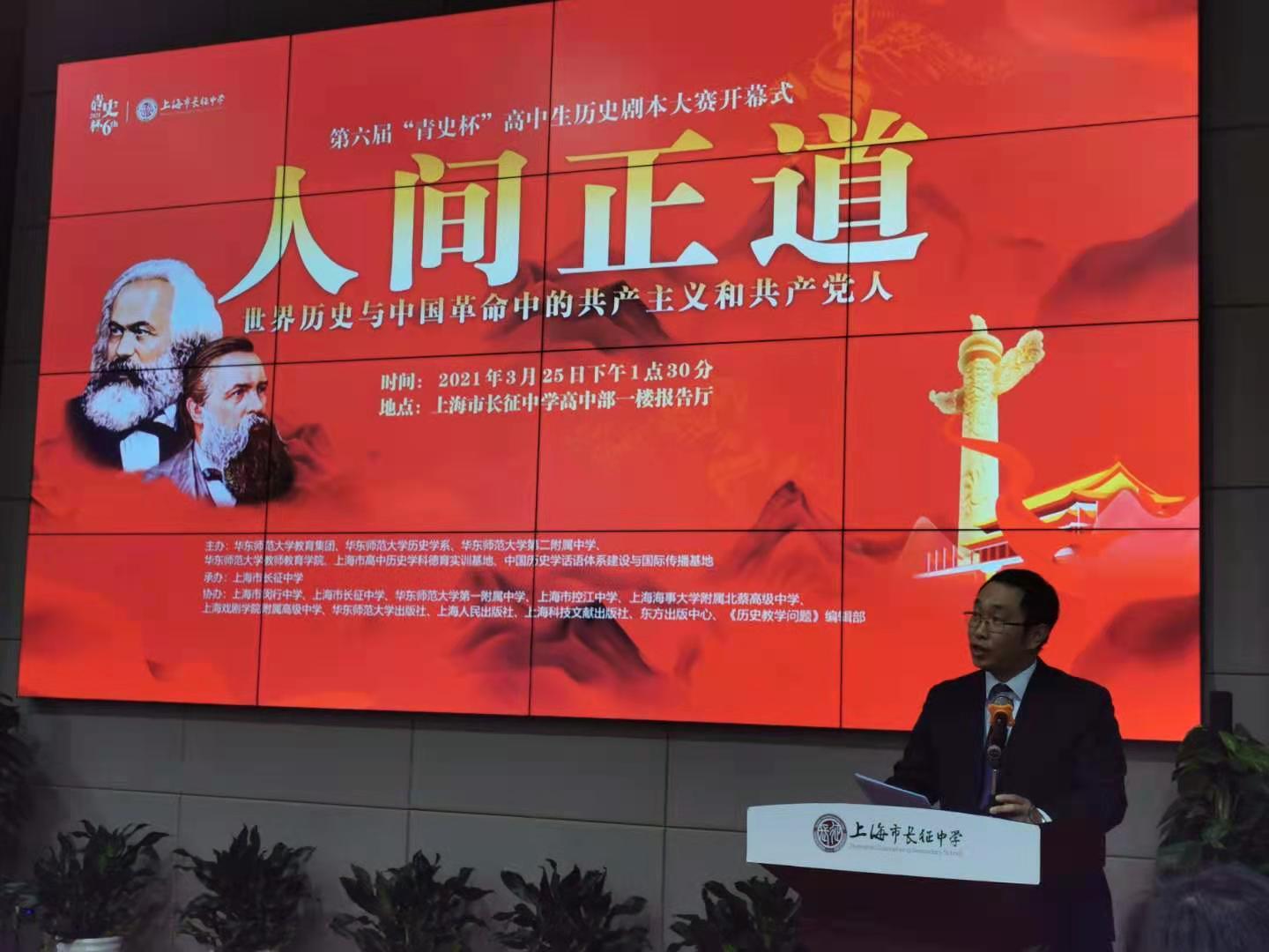 引领青年学子在中国共产党建党百年之际,学史明理、学史增信、学史崇德、学史力行。3月25日,2021年第六届“青史杯”高中生历史剧本大赛开幕式在上海市长征中学举行,华东师范大学专家学者、多所知名高中校长、教师代表等参加。