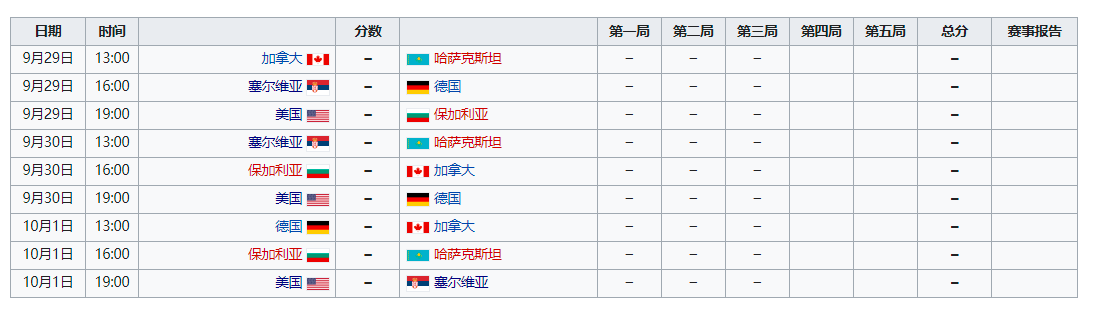 — 12支队伍分成2个小组进行单循环赛,每个小组6支队伍,共5轮。