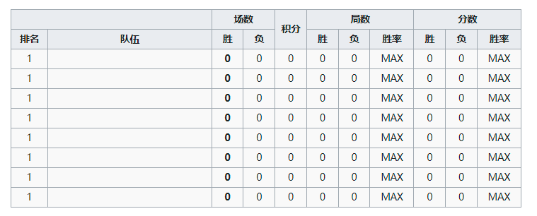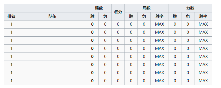 胜负局数:如果两支或多支球队在获得的积分相等,他们将按照所有胜局数除以所有负局数得出的商数排名。