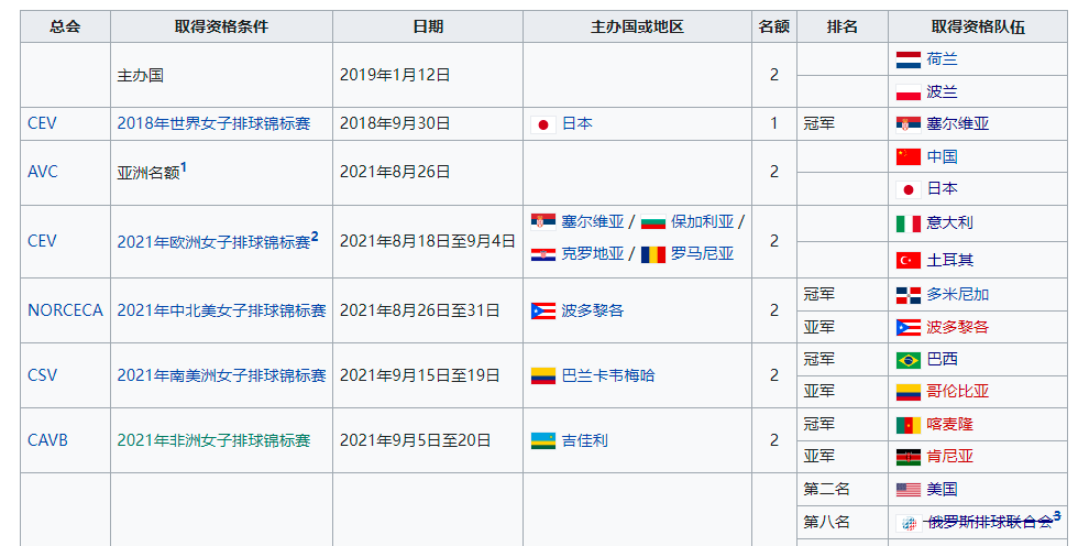 1、 因COVID-19疫情严重影响亚洲女子排球锦标赛的举办,故国际排球总会决定以亚洲区女子排名前两名的队伍作为本届赛事的亚洲代表。