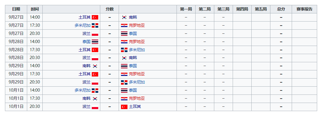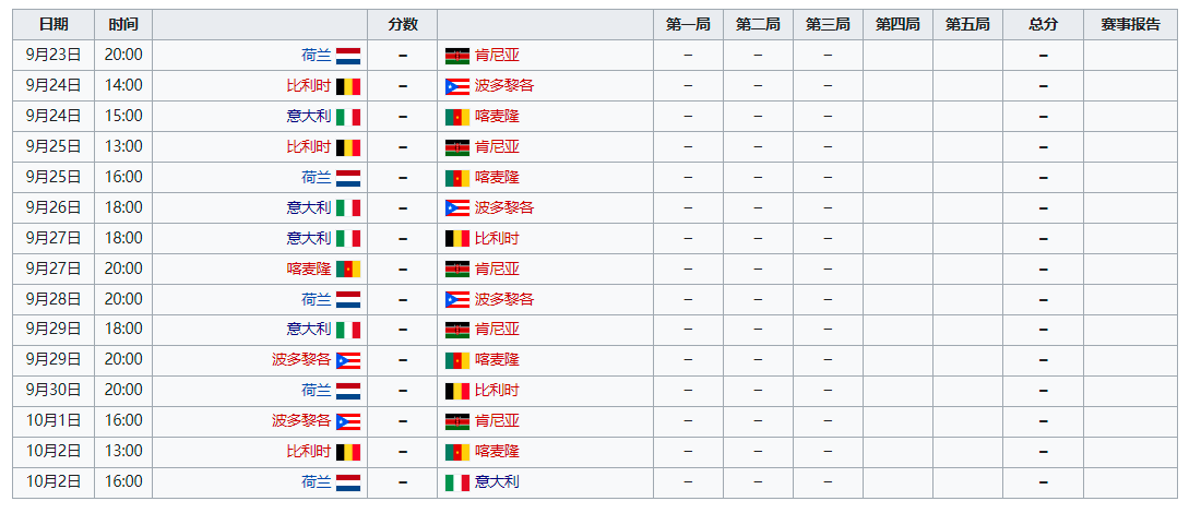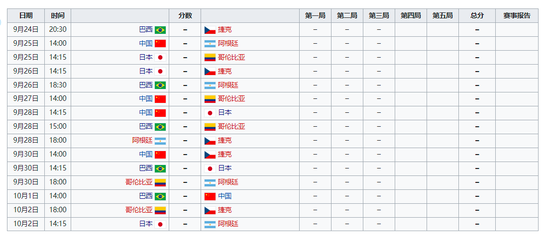 — 小组赛比赛日:男排7月24日-8月1日;女排7月25日-8月2日。