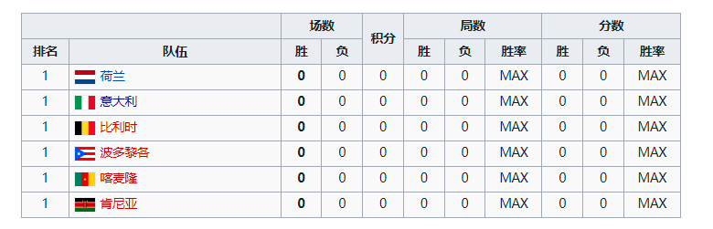 3、如果球队在检查胜负场数和获得的积分后仍然相等,那么国际排联将检查结果,以便按以下顺序打破平局: