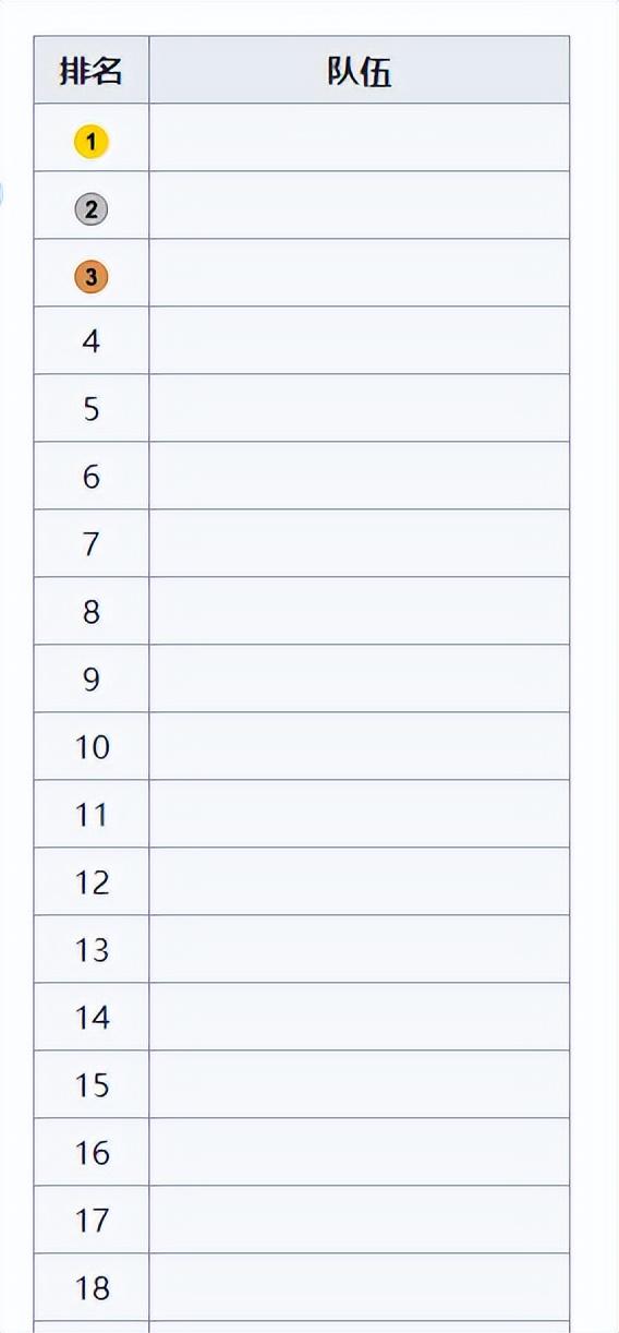 2、如果出现胜负场数相等,将适用以下第一个决胜积分: 球队将按照每场比赛获得的最高分排名如下: