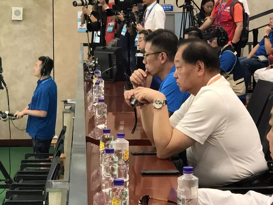 射击比赛现场,小编还惊喜的发现,我国首位奥运冠军许海峰今天也来到现场观看了比赛。据他本人表示,自从04年之后他就基本没有再看过射击比赛了,如今射击比赛规则改变了很多,他也借青运会这个机会,来了解一下当今的射击比赛到底有何改变。
