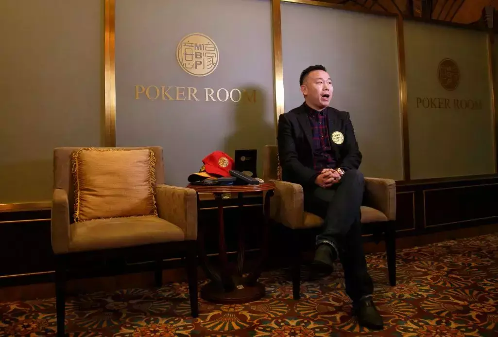 北京扑克俱乐部3层的走廊尽头是张勐的办公室,金棕色落地窗帘点缀着银色壁布,酱红色的天鹅绒沙发椅围绕着蛇皮压纹的黑色台桌,颇有电影《澳门风云》里的味道。张勐穿着深色条纹西装和马甲,有点像老电影里的欧洲绅士。