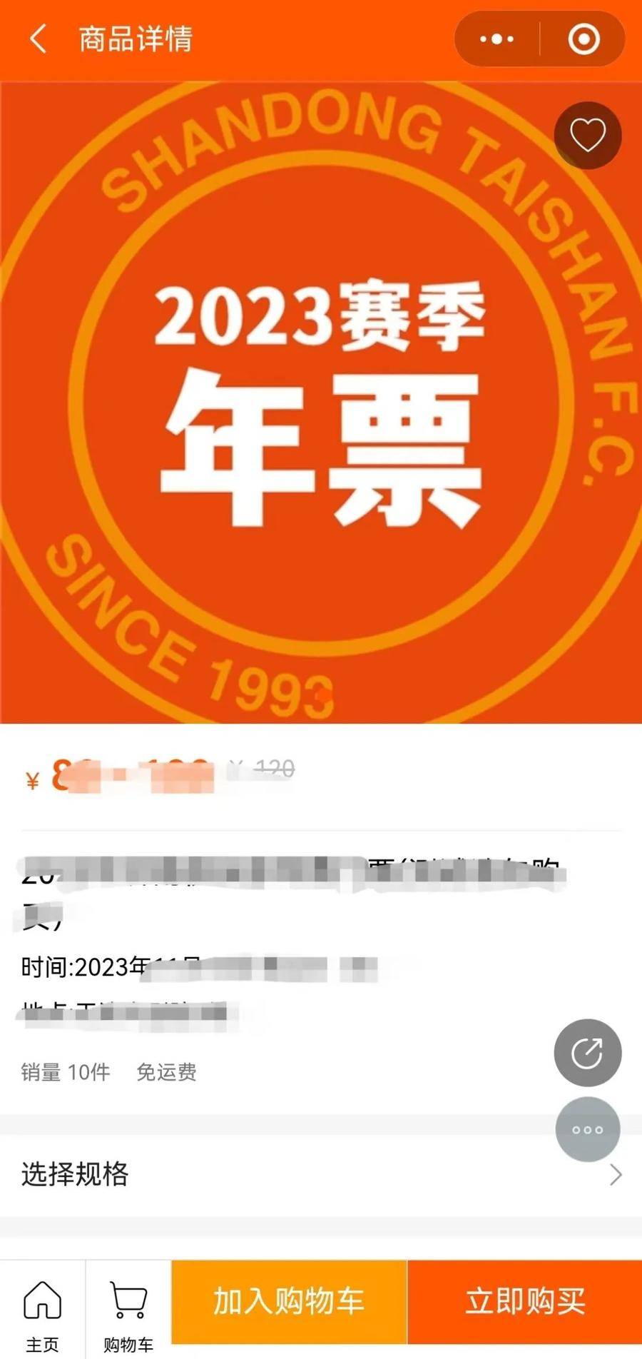 2023赛季山东泰山足球俱乐部主场赛事年票公告