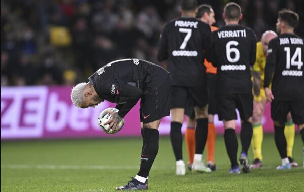 北京时间2月20日04:00,法甲第25轮,上半场0-3落后,梅西和姆巴佩同时哑火,内马尔扳回一城后离谱罚丢点球,巴黎圣日耳曼客场1-3南特。