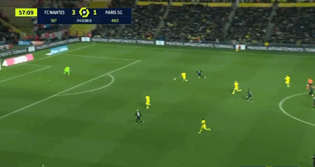 上半场结束前,大巴黎再遭打击,主裁判看了录像回放后,确认维纳尔杜姆手球犯规,改判点球。南特这边由布拉斯主罚点球命中,大巴黎半场0-3落后。根据数据统计,这是大巴黎近40年来首次面对南特半场0-3落后。