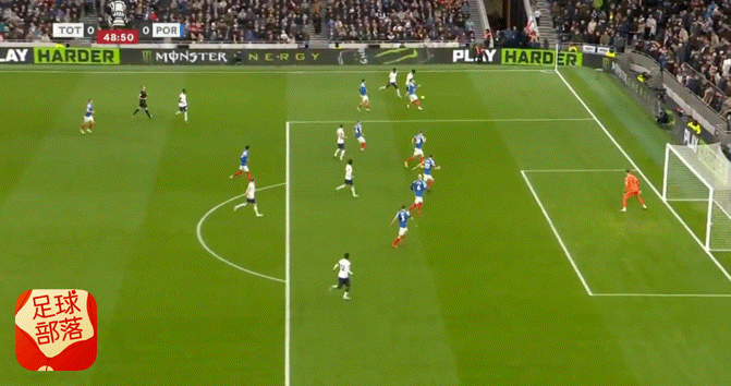 第50分钟,凯恩禁区左侧肋部与塞塞尼翁撞墙配合后沿大禁区线内切打门得手,热刺1-0取得领先!