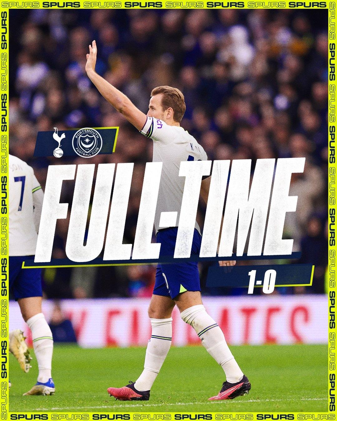 北京时间1月7日20点30分,2022-2023赛季英格兰足总杯第三轮迎来一场焦点之战——英超托特纳姆热刺主场迎战英甲球队朴茨茅斯。上半场,双方都没能取得进球,战成0-0;下半场,哈里-凯恩远射破门,帮助热刺1-0战胜朴茨茅斯,晋级32强。