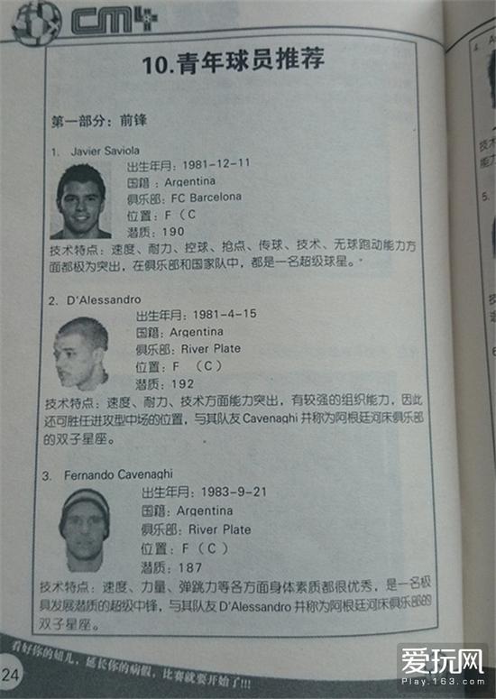 随游戏《冠军足球经理4》附带的球员推荐册。当年“得其一可得天下”的三位河床射手