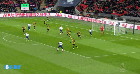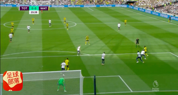 第35分钟,哈里-凯恩左路横敲,阿里中路直接打门被门将抱住。第42分钟,贝尔温左路突破被卡斯卡特放倒,热刺获得前场左路任意球,孙兴慜主罚吊入禁区,门前没人碰到球,皮球直接飞进球门远角,热刺1-0取得领先。 上半场结束,热刺1-0领先沃特福德。