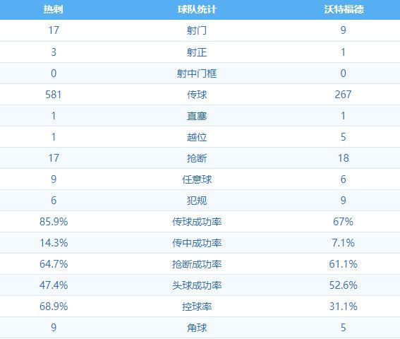最终,全场比赛结束,热刺1-0战胜沃特福德,以三连胜登上英超积分榜首。