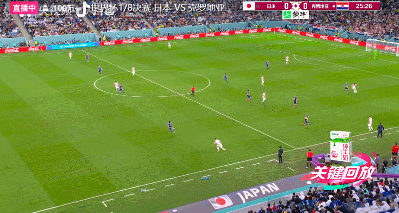 加时赛下半场,日本队用田中碧换下了守田英正,克罗地亚队同时换上了利瓦亚和奥尔西奇两名前锋,撤下了替补出场的布迪米尔和佩里希奇。第111分钟,克罗地亚队右侧传中被破坏出底线。