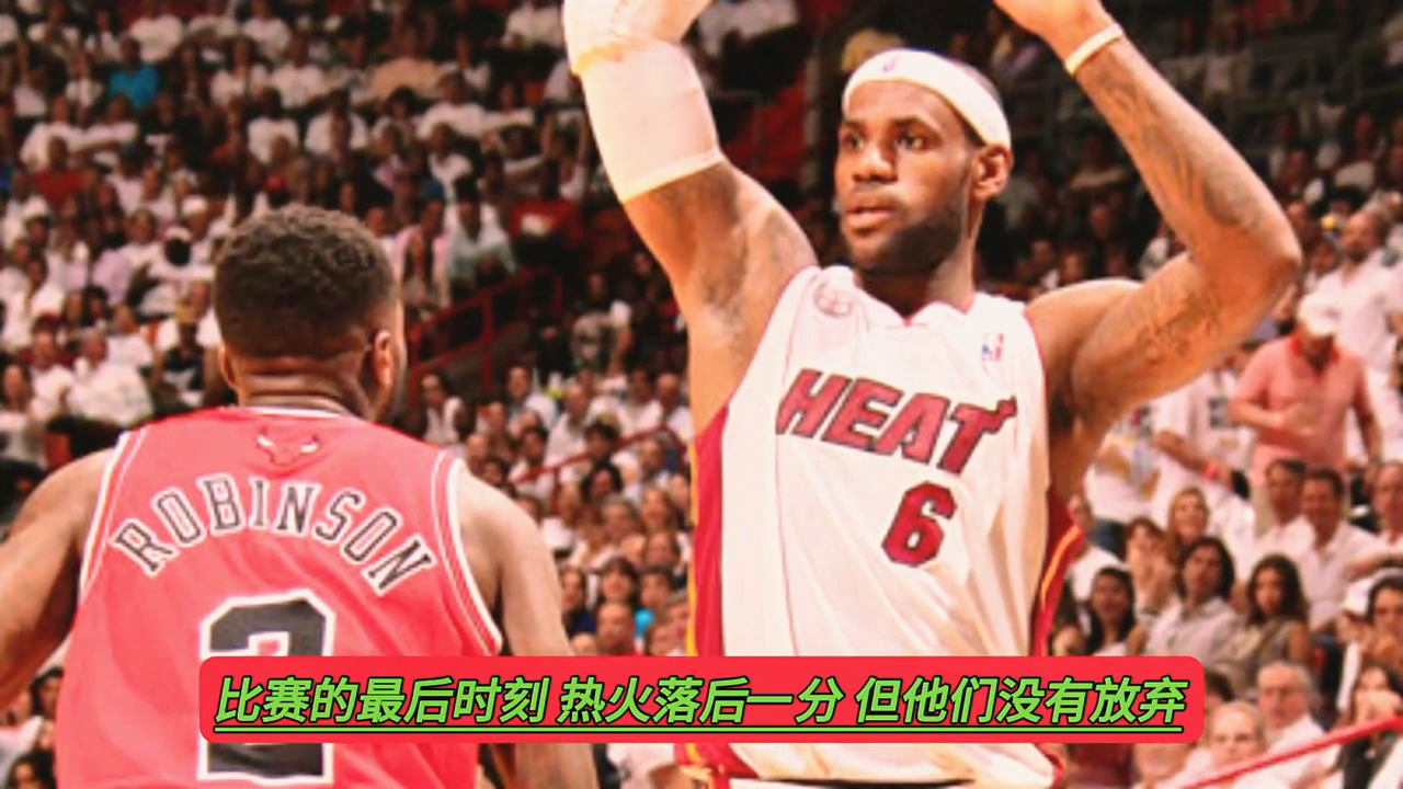 比赛的最后时刻热火落后一分但他们没有放弃,德维恩·韦德在关键时刻挺身而出,他完成了一次精彩的突破上篮帮助热火追平了比分。随后勒布朗·詹姆斯在最后一秒命中了绝杀三分球,热火以118-116险胜公牛。