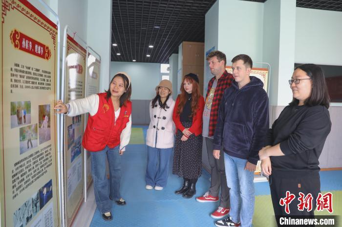 志愿者为外国友人介绍当地的非遗文化。张鹰 摄