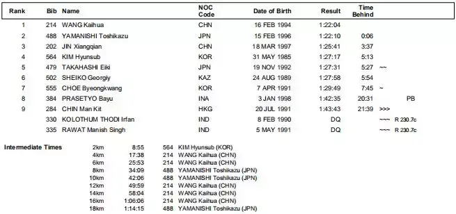 今天我们来看2018年雅加达亚运会田径比赛的官方全成绩,田径大本营为大家截图整理如下。