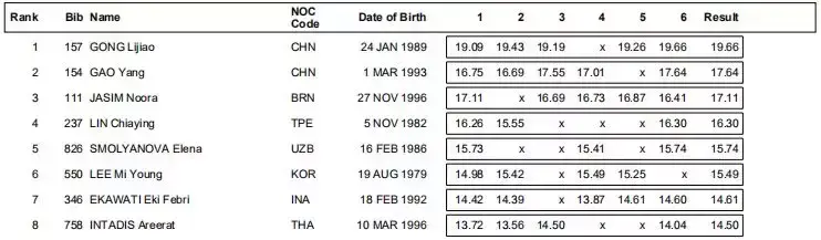李玲蝉联冠军并大幅度提升了亚运会纪录。