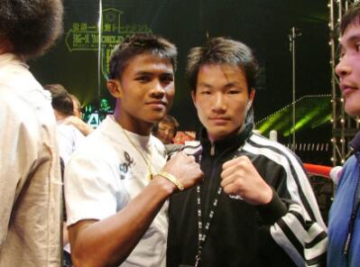 赛后,虽然输掉了比赛,但托尼还是很乐观,看到中国拳手康恩还亲切去问好,合影。
