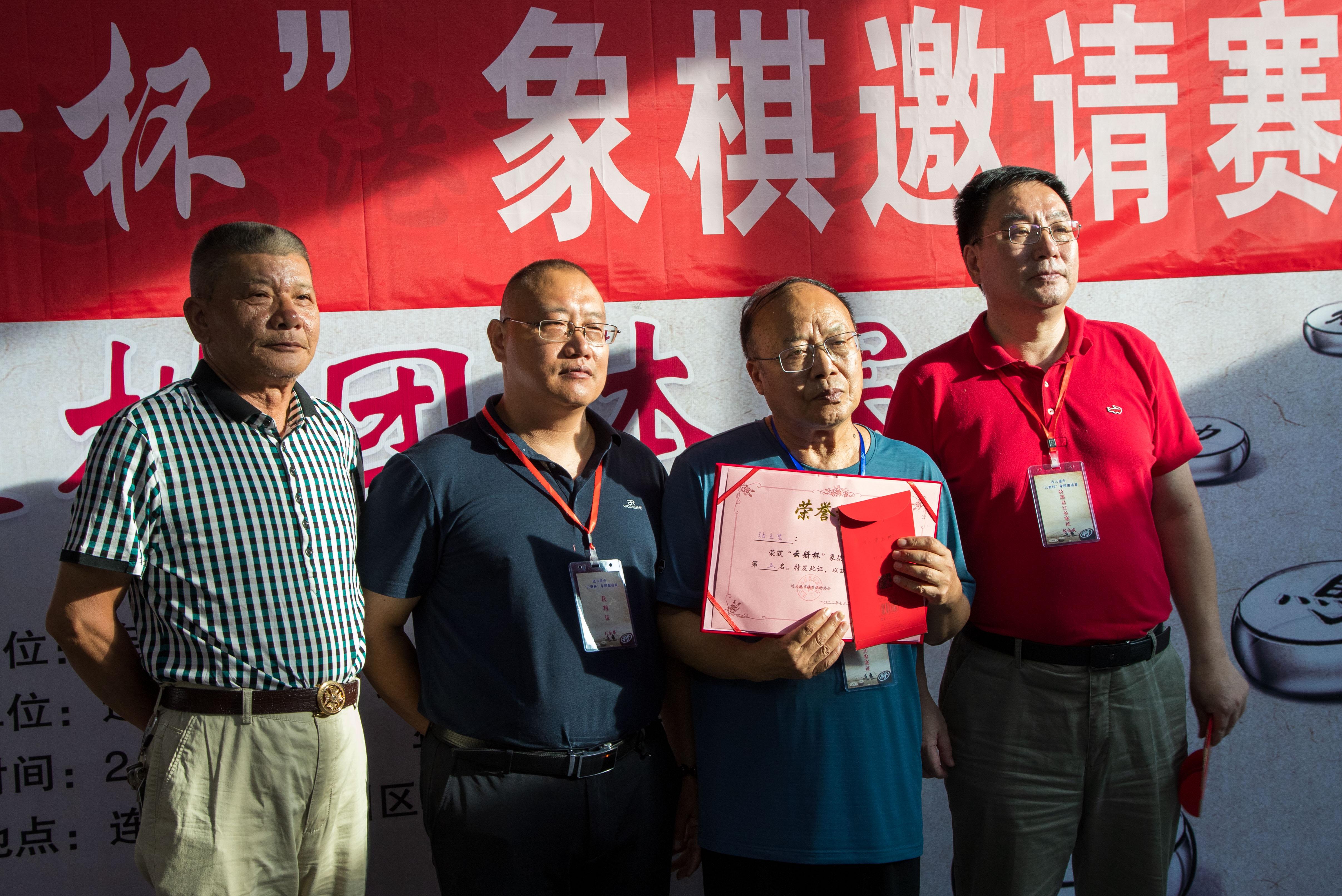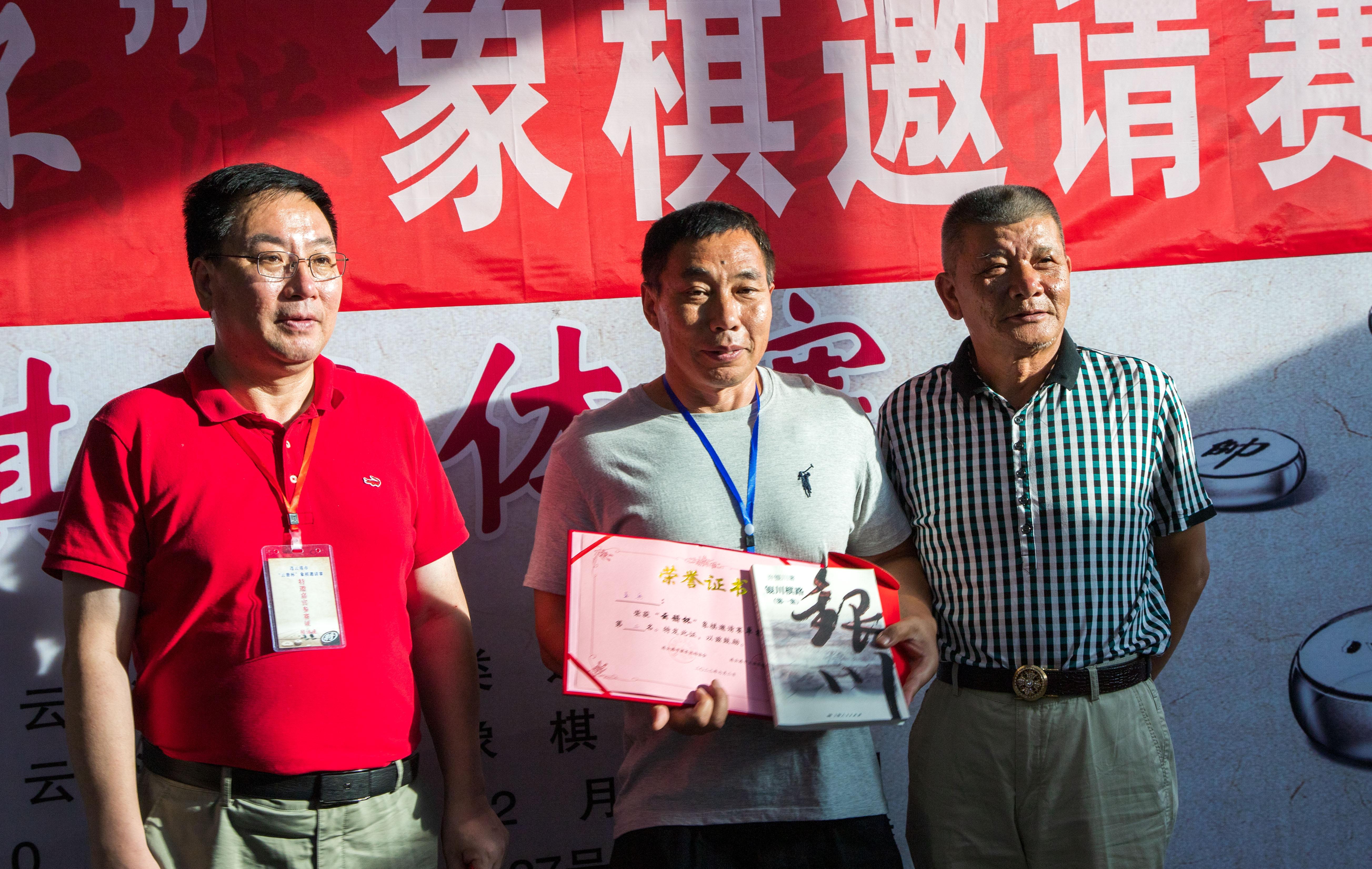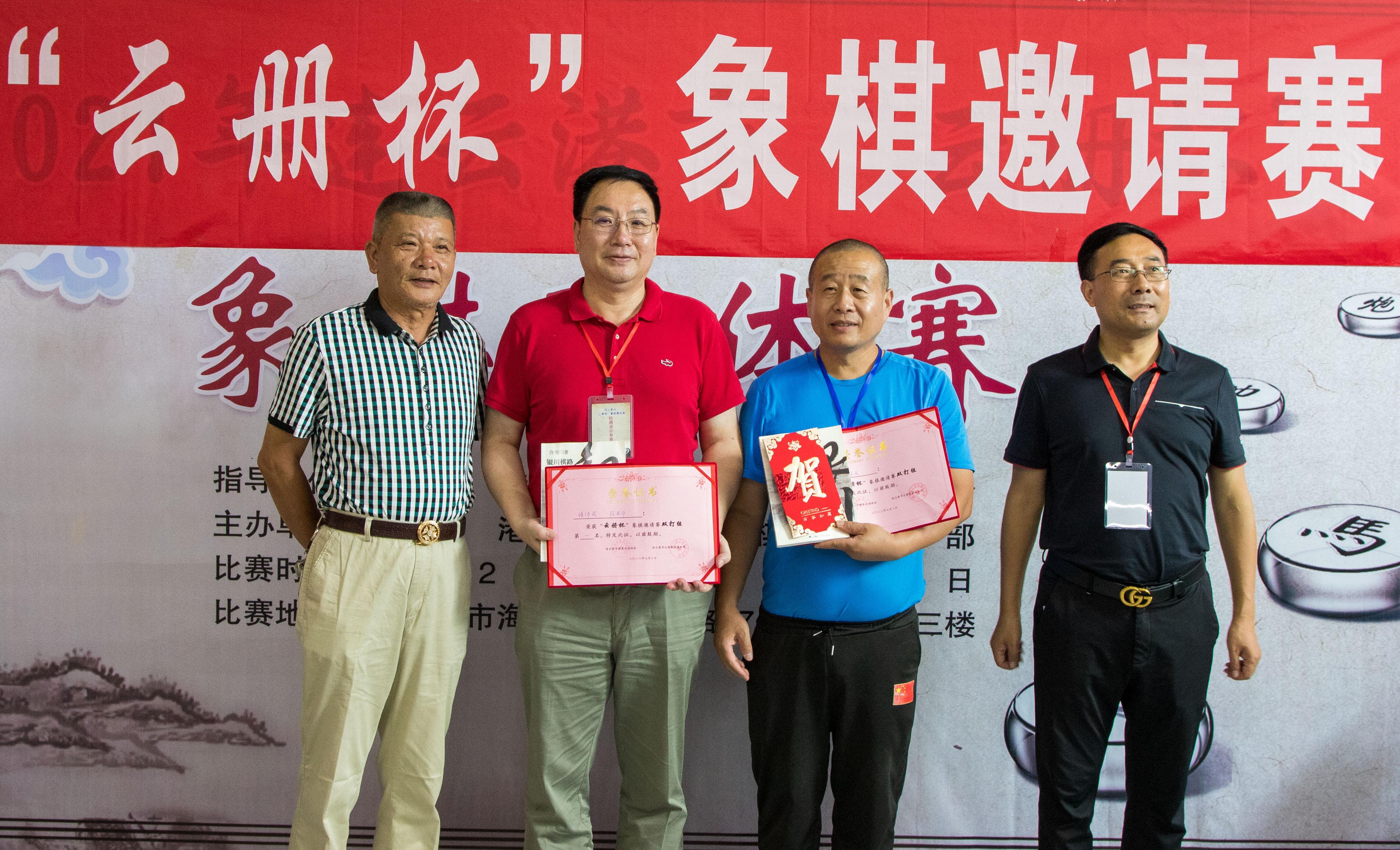 连云港市新华书店总经理侯沛成、连云港市棋类运动协会象棋协会主席张成智、连云港市徐福酒业有限公司董事长孙国银为获奖选手颁奖。