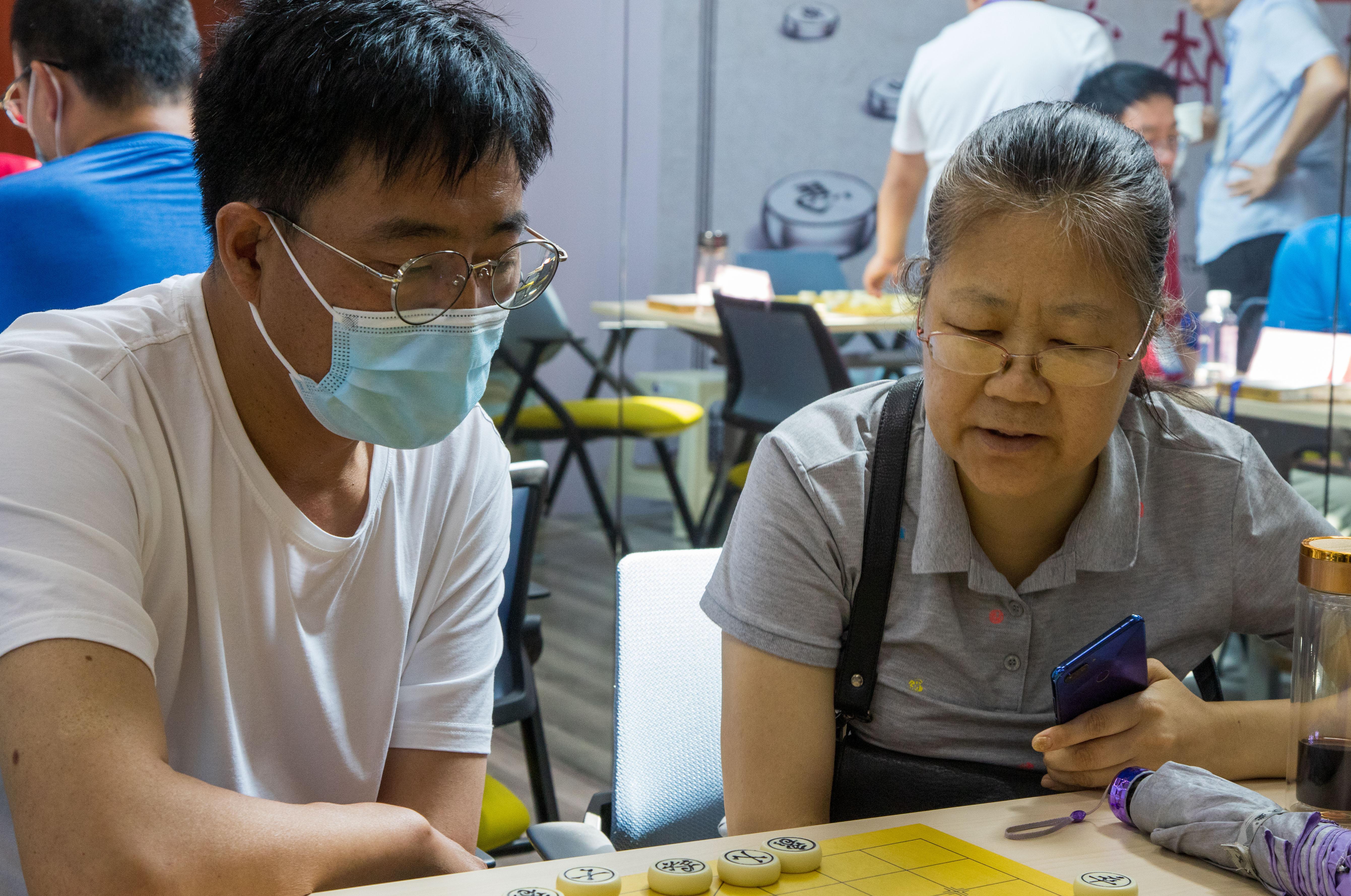 连云港市新华书店总经理侯沛成,不仅把企业经营得风生水起,棋盘上也是一把好手。比赛中,面对对手猛烈攻势,他淡定自若、巧思如潮,出车驾炮、拱卒跳马,行云流水、一气呵成,和陈书华默契配合勇夺双人组比赛冠军头衔。