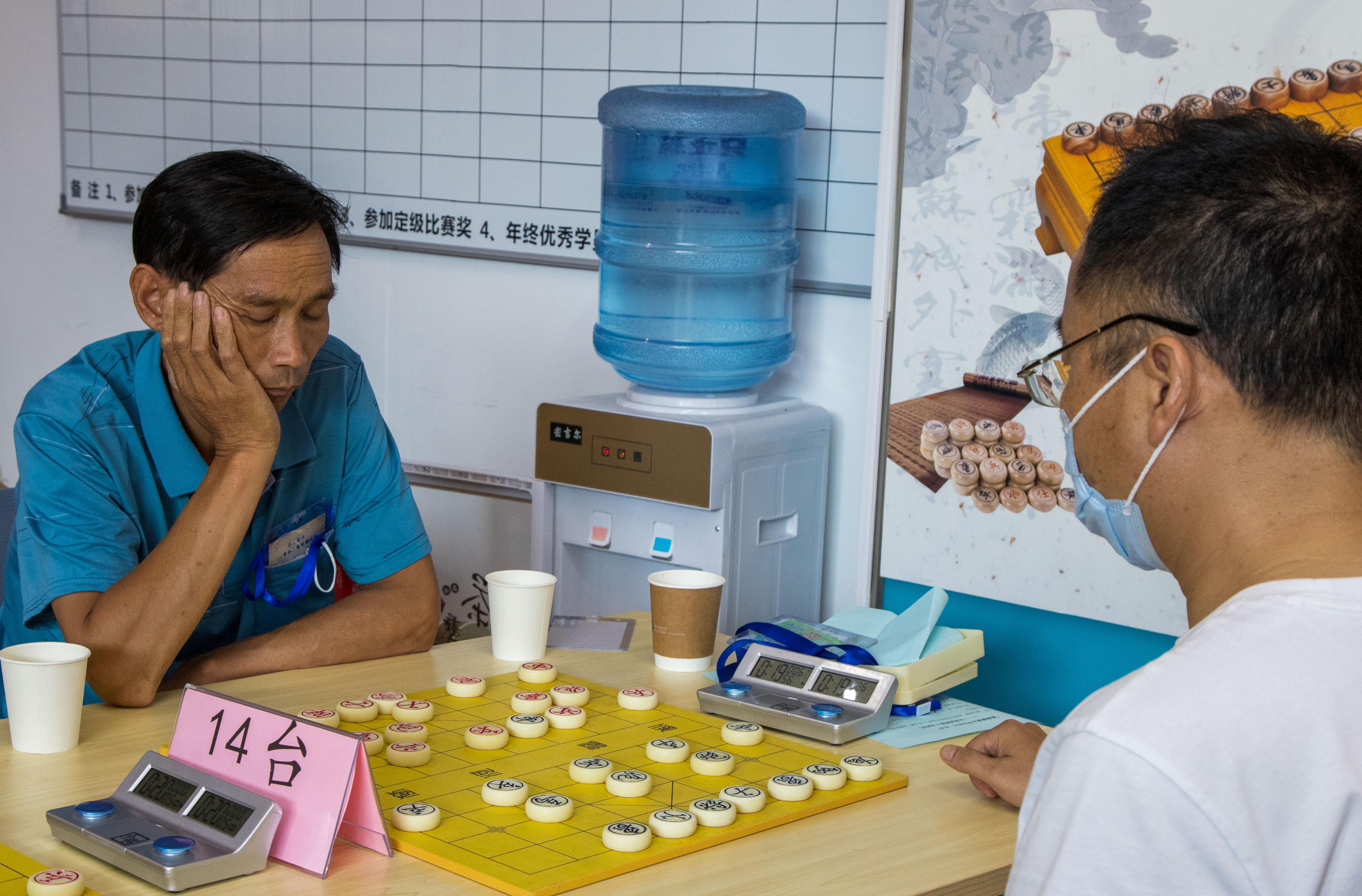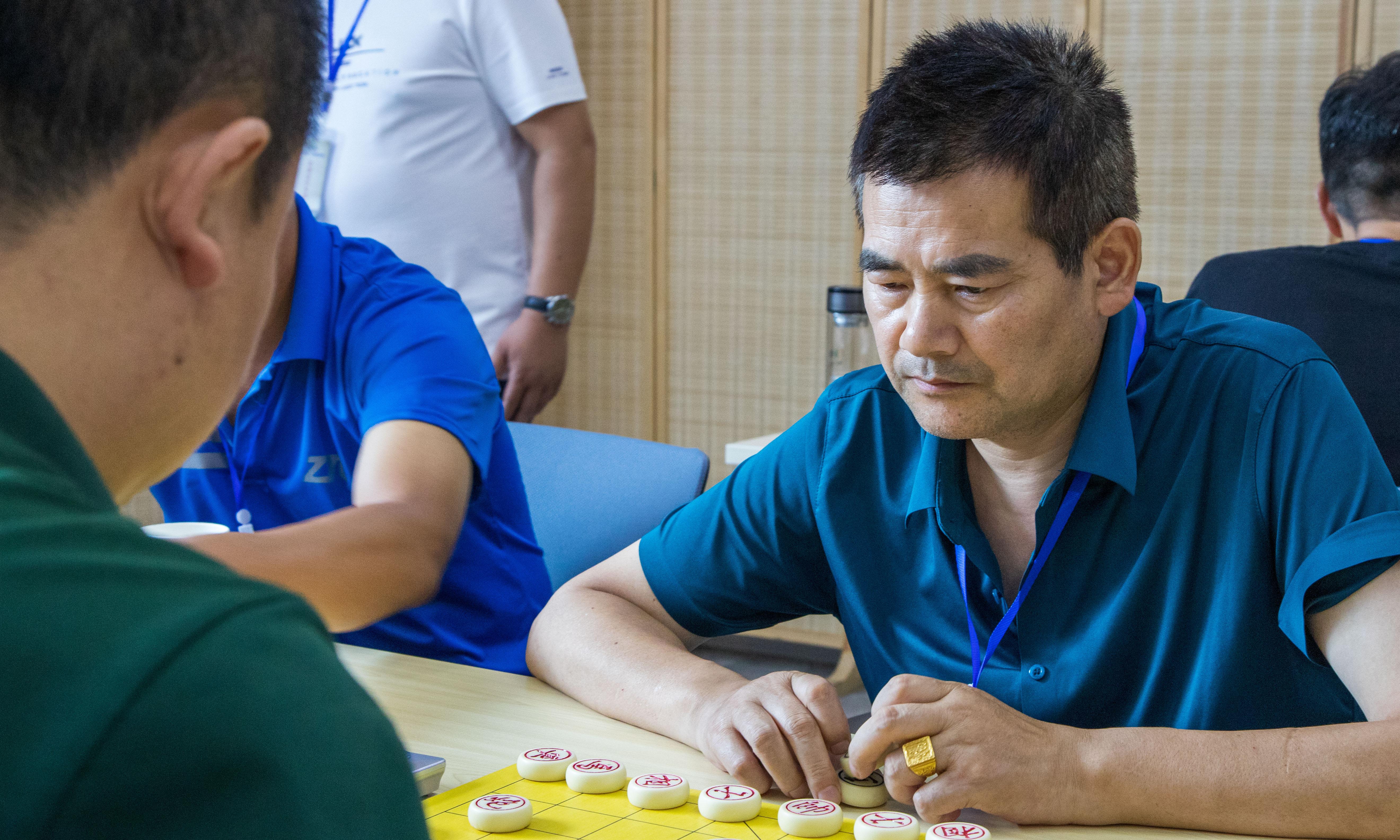随着裁判长张成智一声令下,比赛开始。赛场一片静谧。静谧中却是刀光剑影、战马嘶鸣。选手们在小小的棋盘之上,调兵遣将、捉对拚杀,车马相士卒,你来我往,各不相让。