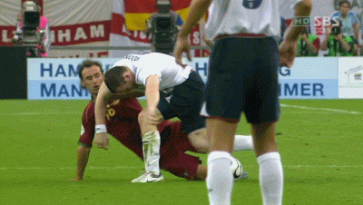 2006年世界杯1/4决赛英葡大战,鲁尼踩踏卡瓦略,他的曼联队友C罗迅速冲上前向裁判抗议,被鲁尼推了一把。主裁判向鲁尼出示红牌,C罗走向替补席时眨眼,似乎是诡计得逞,这个动作也让他成为全英公敌!